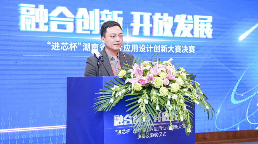 湖南進芯電子科技有限公司副總經理易峰致辭時表示,此次芯片應用設計創新大賽是學生展示自我的平臺,極大的促進了產學研的結合,促進了成果轉化、拓展了芯片應用場景,為集成電路行業人才培養做出了積極貢獻。最后他預祝參賽選手取得好成績,預祝此次大賽取得圓滿成功。