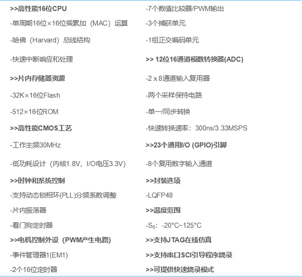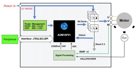 ADP16x器件提供增強型DSP架構設計,以低成本實現低功耗和高性能處理能力。為數字電機和運動控制應用而優化的幾種高級外設已經被集成,以提供一個真正的單芯片DSP控制器。與現有的DSP控制器設備代碼兼容時,ADP16x提供更高的處理性能和更高水平的外設集成。