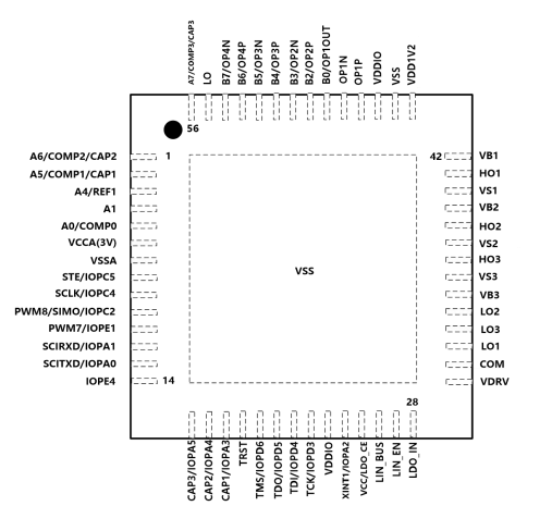 六路NMOS Pre-Driver+4TCON+3CAP+QEP+延時(shí)濾波+運(yùn)算加速單元(除法+開方+反正切+帕克變換+32位乘法移位 |