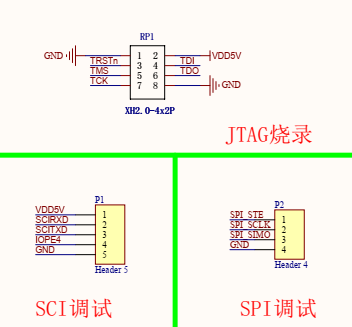當(dāng)需要離線燒錄程序時(shí),通過(guò)5V、TX、RX、IOPE4、GND信號(hào)測(cè)試焊盤,借助進(jìn)芯的離線燒錄工具可實(shí)現(xiàn)快速的脫機(jī)燒錄。