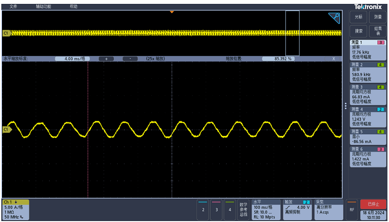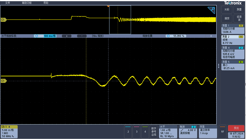 基于以上設(shè)計(jì)思路,我司已推出板級方案,以下為產(chǎn)品運(yùn)行時(shí)電流波形。