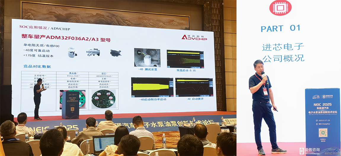9月18日,進芯科技應用技術總監在“智能化與集成化趨勢論壇” 發表了題為《高性能SoC車規芯片在汽車水泵/油泵應用分享》的主題演講。演講從產業視角出發,聚焦新能源汽車熱管理核心部件,詳細拆解了多類場景方案,為產業鏈伙伴提供了兼具前瞻性與實踐性的技術路徑參考,獲得了現場觀眾的高度關注與熱烈討論。