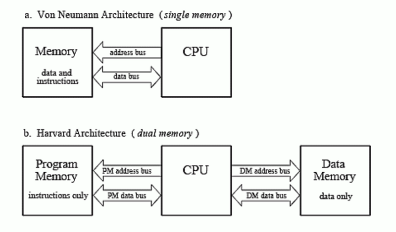 當(dāng)前,雖然最近幾年有一個(gè)叫做存內(nèi)計(jì)算的架構(gòu)非常火熱,但我們比較熟悉的處理器架構(gòu)基本都是馮諾依曼架構(gòu)(von Neumann architecture)和哈佛架構(gòu)(Harvard architecture)。其中,馮·諾依曼結(jié)構(gòu)的處理器使用同一個(gè)存儲器,經(jīng)由同一個(gè)總線傳輸;哈佛結(jié)構(gòu)是一種將程序指令存儲和數(shù)據(jù)存儲分開的存儲器結(jié)構(gòu)。